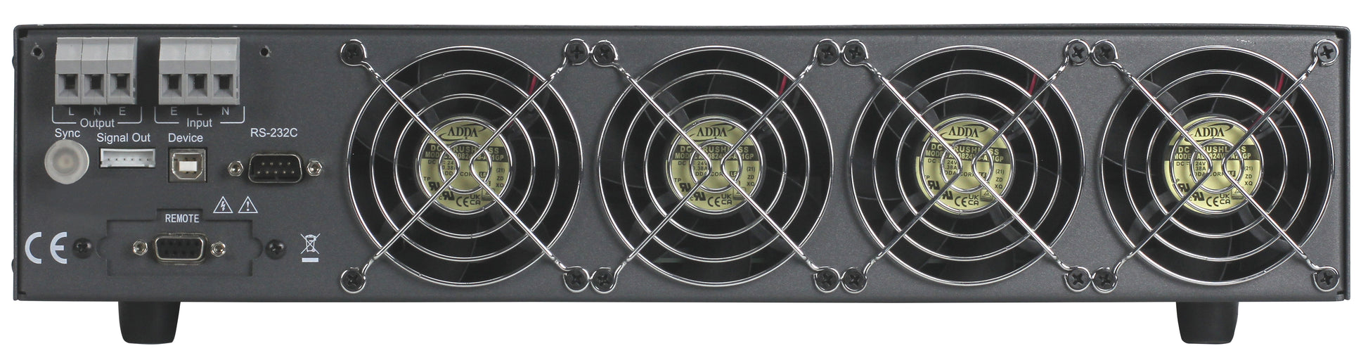 The 9810 Series Programmable AC Power Supplies provide 500 VA or 1000 VA output with adjustable voltage (0 to 300 V) and frequency (45 Hz to 500 Hz). These power supplies feature a color 4.3-inch LCD for easy monitoring of AC voltage, current, peak current, power factor, frequency, and crest factor. The 9810 Series supports advanced list mode programming with up to 50 programs and 9 steps per program, and includes surge/dropout functionality for simulating real-world conditions. Built-in protection features safeguard devices under test with overvoltage, overcurrent, overpower, and overtemperature protections. Communication options include USB (VCOM), RS232, and integration with PLC systems via the dedicated REMOTE terminal.