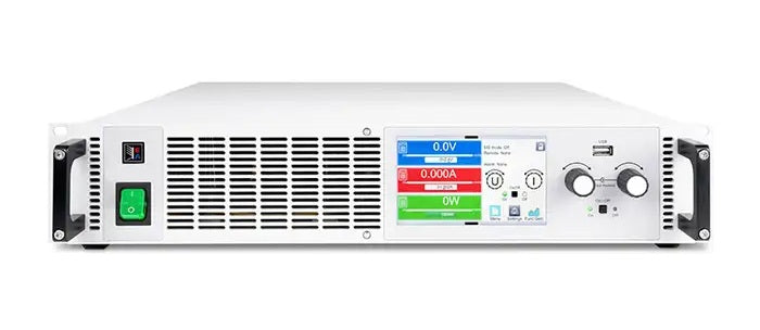 The Elektro-Automatik PSI10750122U Single Output Intelligent Programmable DC Laboratory Power Supply operates as a flexible output stage with a constant power characteristic (auto-ranging) and a wide voltage and current range. This device converts the energy from the grid into a regulated DC voltage with high efficiency. The PSI 10750-12 2U is compatible with practically all global mains voltages. The DC voltage and current ratings are determined by the application and the spectrum range. To achieve higher power and current, this unit is equipped with a master-slave bus. This enables up to 64 parallel connected devices to be combined into one system. Such a system works as a single unit and can use different power classes, only the voltage class must remain constant. Furthermore, typical laboratory functionality is provided. This includes an extensive function generator, alarm and warning management, various industrial interfaces, software solutions, and more.