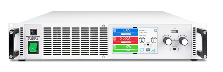The DC laboratory power supplies in the PS 10000 series from EA Elektro-Automatik convert the energy from the grid into a regulated DC voltage with an efficiency of over 96%. The PSI 10000 series includes single and three-phase units, which, together with the wide input range, allows use with practically all global mains voltages. The DC voltage and current are directed by the application, and the spectrum ranges from 0 - 60 V to 0 - 2000 V and from 0 - 6 A up to 0 - 1000 A in a single device. The DC supply operates as a flexible output stage with a constant power characteristic (autoranging), and a wide voltage, current, and power range. To achieve higher power and current, all units are equipped with a master-slave bus. This enables up to 64 parallel connected devices to be combined into one system which can provide up to 1920 W and 64000 A. Such a system works as a single unit and can use different power classes; only the voltage class must remain constant. In this way, a user can construct a 75 kW system from two 30 kW and one 15 kW device from the PS 10000 range. Furthermore, typical laboratory functionality is provided. This includes an extensive function generator, alarm and warning management, assorted interfaces and ports, software solutions, and many more functions.