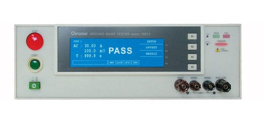 The Chroma 19572 provides high current testing of ground continuity between chassis and power cord ground on a wide variety of electrical products and appliances. The unit is designed for maximum flexibility and operation convenience in mind.