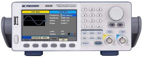 The 4062B Arbitrary Waveform Generator is capable of producing precise sine, square, triangle, pulse, and arbitrary waveforms. The 4062B combines the cost saving benefits of both DDS and true point-by-point arbitrary architectures to meet a wide range of applications that require high signal fidelity and low jitter arbitrary waveform generation capabilities.